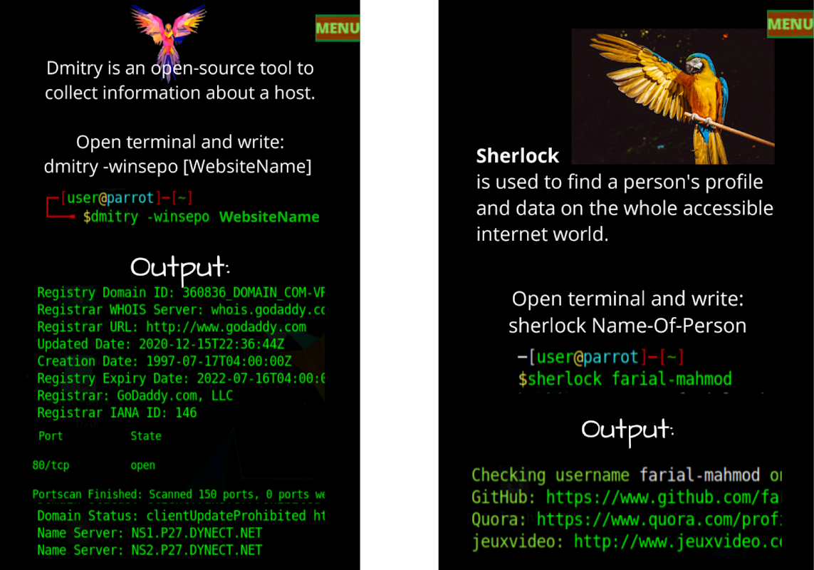 This app has been developed solely for educational purpose. Use Parrot OS : Parrot Linux with caution and take permission before analyzing websites.