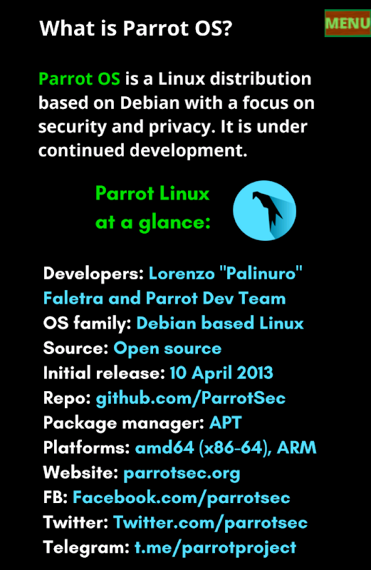 Parrot OS : Parrot Linux is a Linux educational app based on Parrot Security OS.