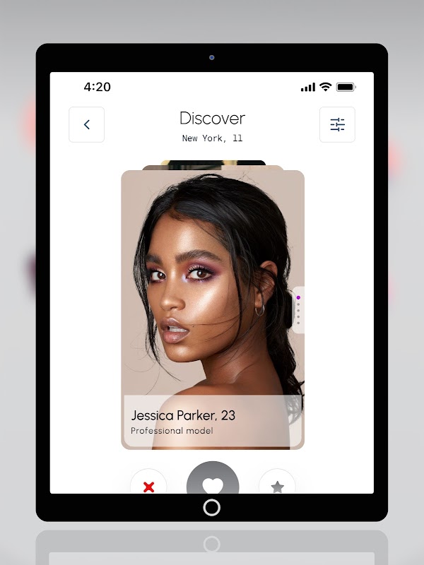 Проведите пальцем по экрану и исследуйте: пользователи проводят пальцем вправо, чтобы поставить лайк, или влево, чтобы передать профили. Каждый профиль представлен привлекательной анимацией, что делает его интерактивным и увлекательным.