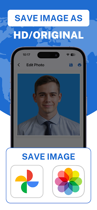 Сохраните фотографии паспорта, визы или удостоверения личности прямо на телефон или мгновенно поделитесь ими. Вы можете распечатать свою фотографию или сохранить ее в различных форматах, гарантируя, что у вас всегда будет цифровая резервная копия.