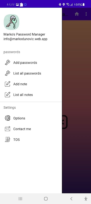 Easily create, list and delete your notes and passwords, copy to clipboard for easy use or use the in app mail functionality to send the data to the address you set.