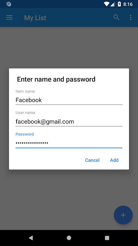 Have you ever forgotten your password to some service? Did it took you long to find your password? With this application you can add, remove or edit your passwords for all your services in one place accessible by your master password. You can create lists for categorizing your passwords for different services.