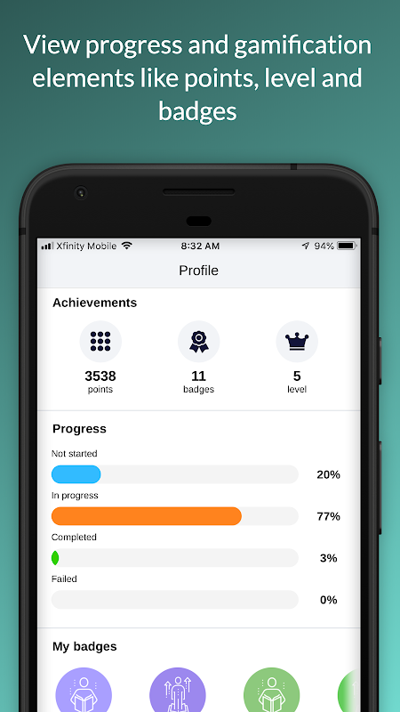 • Gamification: студенты зарабатывают очки, значки и уровни и даже могут видеть, как они занимают место в «таблице лидеров».