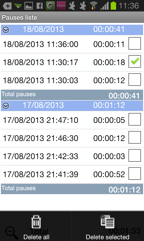 История каждого перерыва сохранилось, который вы можете просматривать и удалять.