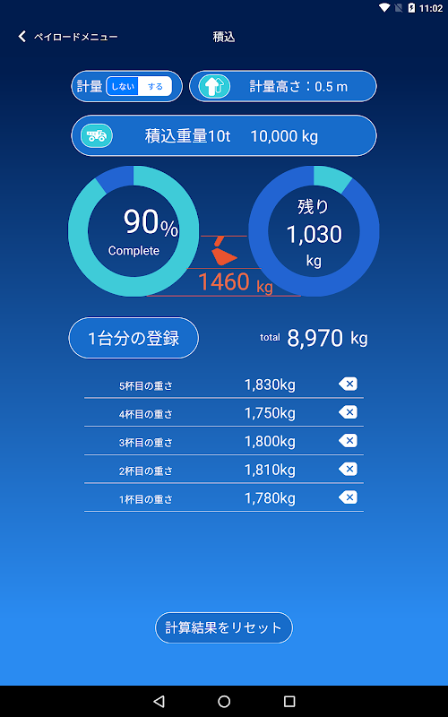 Вы можете весить вес, загруженный ведром гидравлического экскаватора, при выполнении операции погрузки, как и раньше. Результат взвешивания будет отображаться на этом приложении «экран управления загрузкой» в реальном времени каждый раз, когда выполняется операция загрузки.
