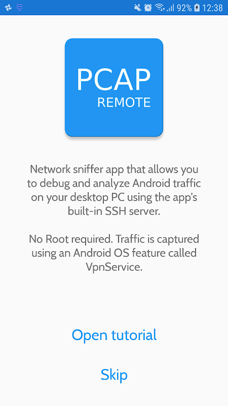 Трафик Android на вашем настольном ПК с использованием встроенного SSH-сервера приложения, который полезен и часто необходим при разработке мобильных приложений, использующих сложные / настраиваемые сетевые протоколы. Трафик захватывается с помощью функции ОС Android под названием VpnService.