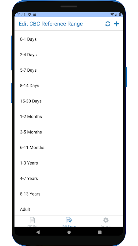 Aplikasi ini memudahkan untuk mencari nilai rujukan darah rutin (CBC) berdasarkan range atau dengan memasukkan tanggal lahir.