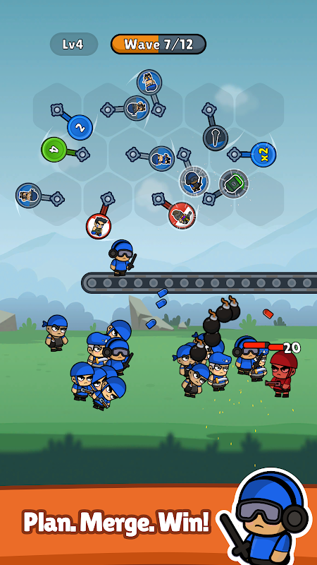 - Объединяйте шары, чтобы разблокировать более сильных юнитов