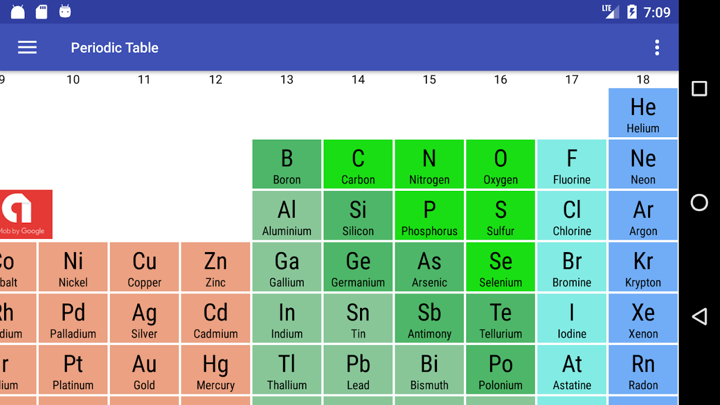 Tabela periódica simples e fácil de usar, que exibe as principais informações da Tabela Periódica dos Elementos Químicos de maneira fácil e intuitiva (Símbolos, Número Atômico, Massa, Peso, densidade, etc).