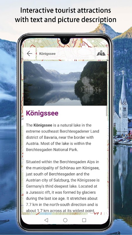 - Подробные пешеходные и велосипедные карты включают отмеченные пешеходные и велосипедные маршруты, лыжные карты, дорожные карты, карты для горных велосипедов