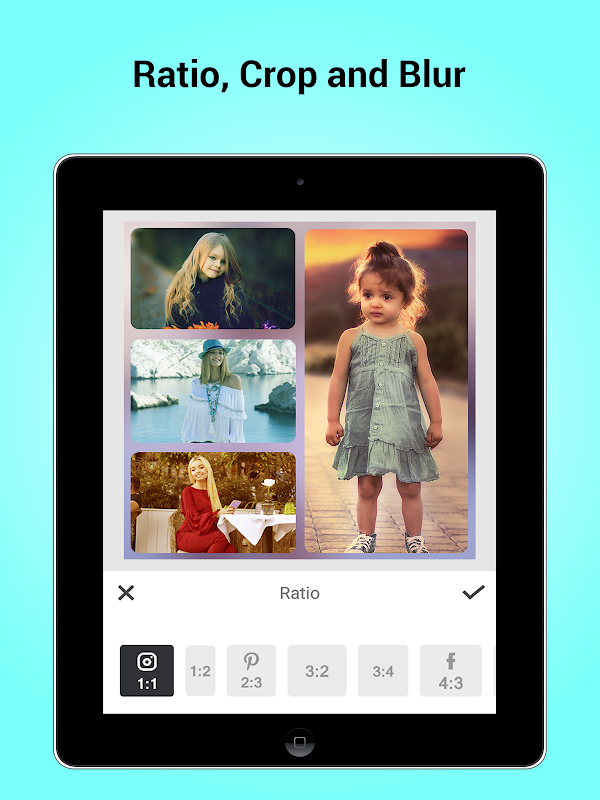 Select Photo Grid and aspect ratio. More than 50 layouts and they are organised based on the number of photographs that you wish to collage. If you select one photo then you will get beautiful PIP effects.