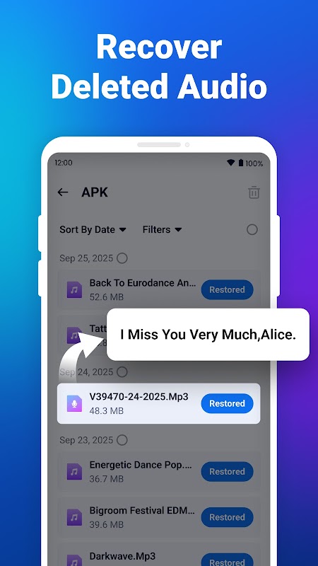Восстановление данных: вы можете восстановить музыку, голосовые записи и другие аудиоданные