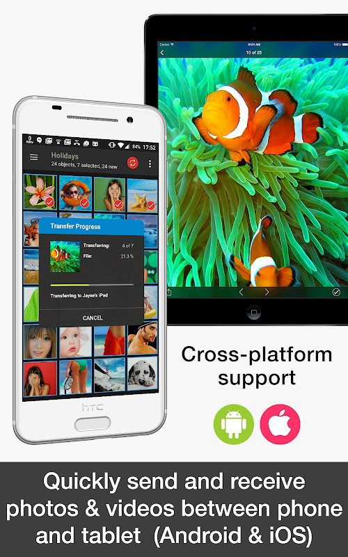 Беспроводная передача, резервное копирование и обмен фотографиями и видео между устройствами Android, iPhone, iPad, компьютером, NAS, облачными сервисами и фотосервисами. Любой вид передачи – PhotoSync справится!