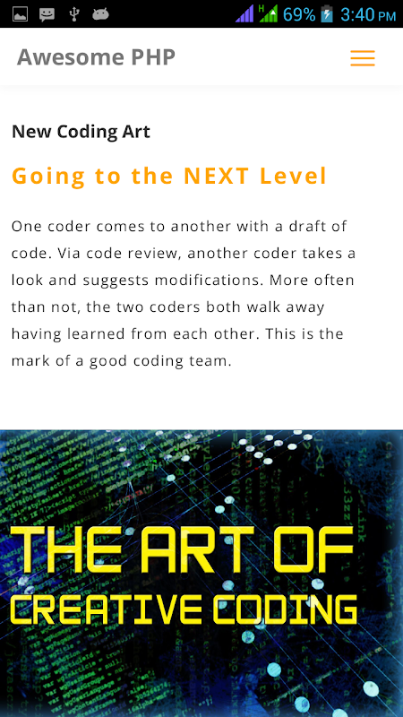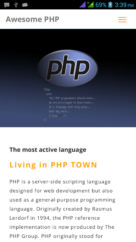 This application allows you to browse different chapters for PHP and HTML both. Application contains name and description of different tags of PHP and HTML5, through which you can learn PHP and new features of HTML5 & CSS.