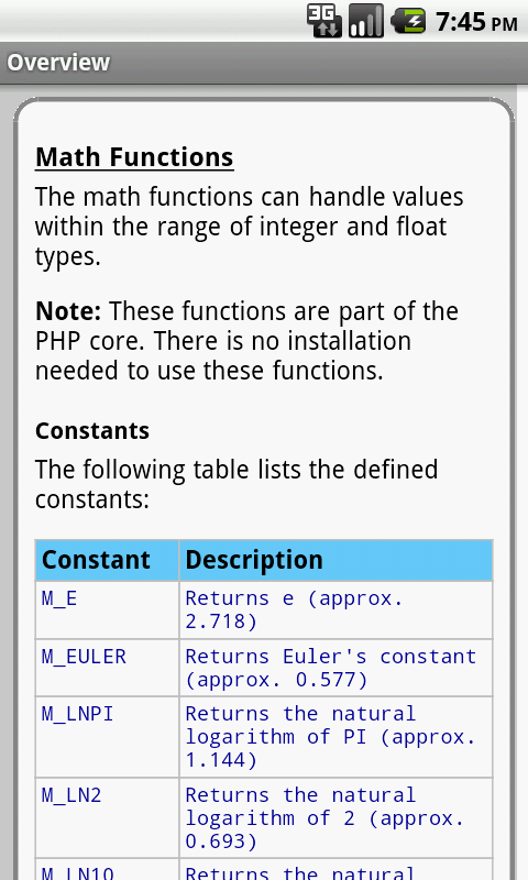 Свойства PHP / функции разделены на категории и поиск. Каждый подробная информация экран содержит описание, синтаксис, параметры, примеры и многое другое. Кроме того, большинство примеров включают фактической мощности.