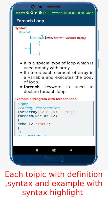 Это единственное приложение, в котором вы можете выучить весь учебный план языка PHP с помощью учебных пособий, программ и вопросов и ответов об интервью.