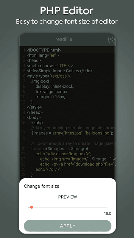 Изучите программирование на PHP и попрактикуйтесь в редакторе php. Средство просмотра файлов PHP поддерживает опции отмены, повтора, поиска и замены, которые очень помогают разработчику при кодировании или редактировании кода.