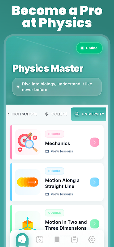 Лучший, универсальный инструмент для изучения физики. Получите комплексные видеоуроки, решенные тесты и важные заметки, идеально подходящие для студентов по всему миру. Перестаньте мучиться со сложными понятиями и начните получать высокие оценки. Занимайтесь офлайн в любое время и в любом месте!