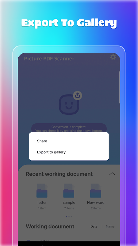 Picture PDF Scanner — это мощное и удобное приложение, предназначенное для легкого преобразования PDF-документов в изображения JPG и PNG. Если вам нужно поделиться изображениями или сохранить их для будущего использования, Picture PDF Scanner предоставит вам простое и эффективное решение.