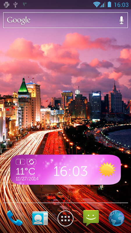 Take this new pink clock widget and match it with your stylish pink wallpaper or live wallpaper! This lovely weather widget and digital clock widget at the same time is something you have always needed for your phone. Choose among various beautiful widget skins and make your home screen look wonderful. Don't let the bad weather influence your mood, with these beautiful widgets you will always have a smile on your face and the sun will shine for you all day every day.
