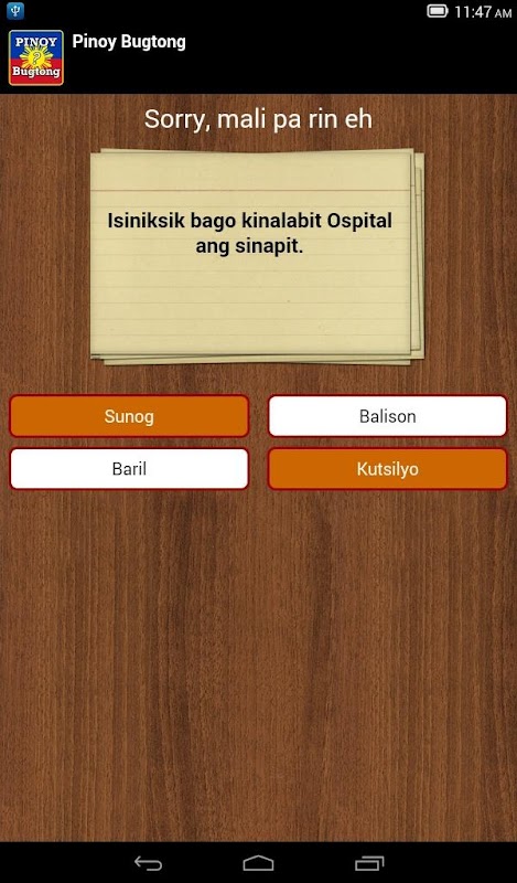 Pinoy Bugtong (Загадки) — это игра-викторина, в которой нужно отгадывать популярные тагальские головоломки.