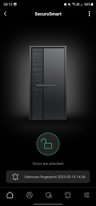 - Получать уведомления при обнаружении неизвестного отпечатка пальца