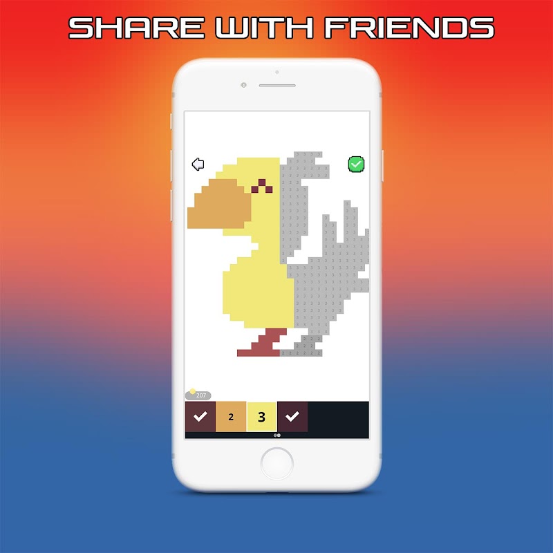 Игры раскраски по клеточкам с цифрами очень просты и позволяют каждому сделать свой день более спокойным, расслабляющим. Раскраски по числам станут доступны с помощью этого приложения, ведь пиксель арт изображения пользуются большой популярностью. Каждый из игроков влюбляется в игру Раскраска по номеру, после первой же игры, так как игра подходит для взрослых, а так же эти раскраски для детей.