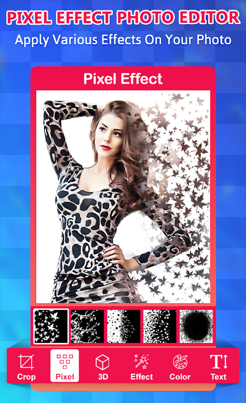 Pixel Effect photo editor is to effects quickly transforms your favorite picture into a fashionable eye catcher! Turn your photos into beautiful wallpapers for your home screen.