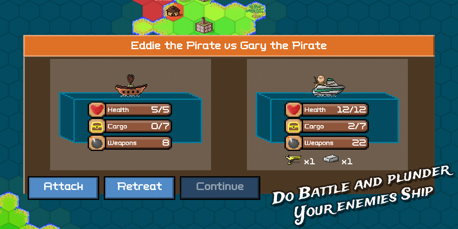 Set sail with Pixel Pirates! A turn based game filled with trading, strategy and action.