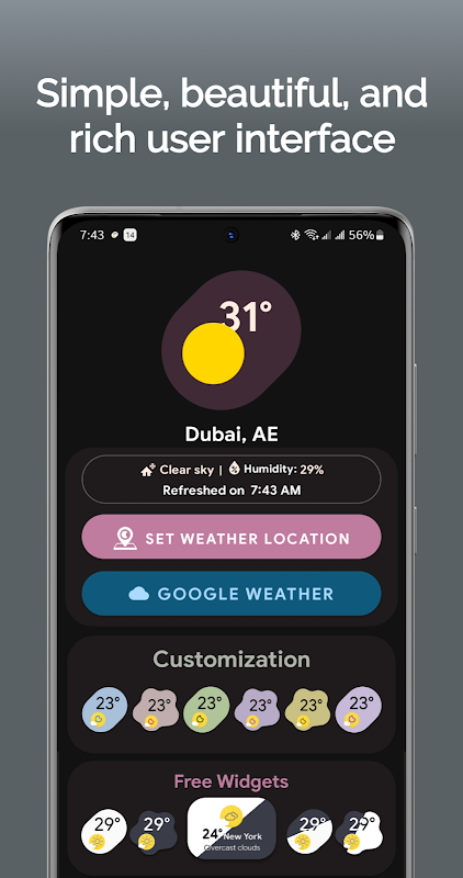 Отдельное приложение, предлагающее красивые погодные виджеты, вдохновленные дизайном виджетов погоды Pixel со всеми современными стилями в высоком качестве и красивым полностью настраиваемым дизайном.