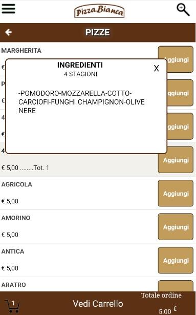 Con l'app PizzaBianca hai sempre accesso completo al tuo carrello alla cronologia degli ordini.