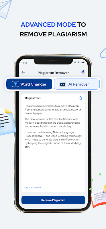 Наше приложение для удаления и удаления плагиата с помощью ИИ создано, чтобы помочь вам удалить все виды плагиата из контента. Помимо плагиата, оно также может удалить следы ИИ и роботизированный тон из ваших текстов с помощью функции удаления ИИ. По сути, приложение для борьбы с плагиатом использует искусственный интеллект для точной конвертации вашего текста, скопированного с плагиата и ИИ, в уникальный и похожий на человеческий текст. Проверка на плагиат гарантирует сохранение истинного смысла вашего текста, одновременно удаляя плагиат и ИИ-код.