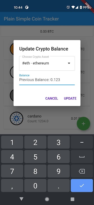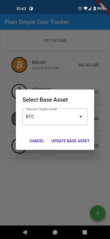 App is a simple tool to track current value of assets with user's choice of base Asset.