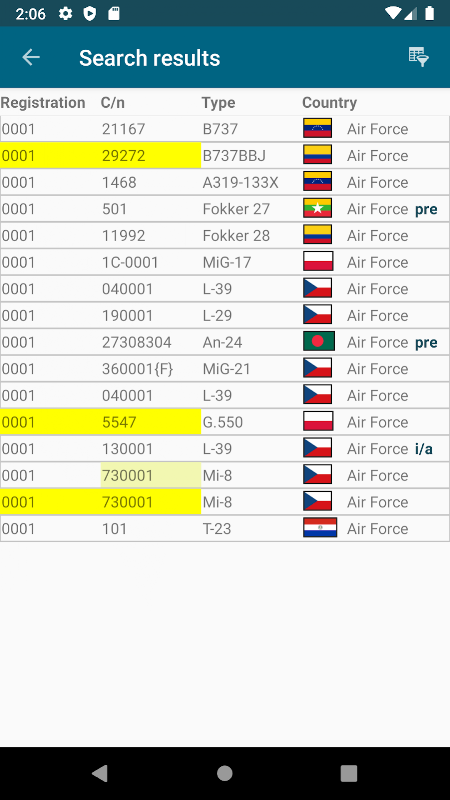 Вы можете просматривать полные производственные списки, обзоры стран, списки флотов или искать любой набор самолетов, который вы хотите. Практически нет ограничений на поиск, который вы можете выполнить, или на количество показанных самолетов.