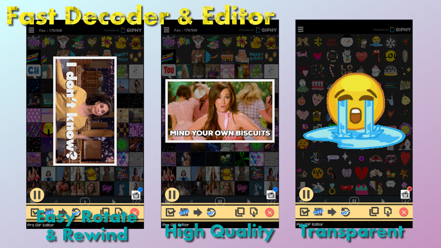 (2) Создатель GIF для создания новых GIF-файлов с использованием любых GIF-файлов, которые вы искали в нашем приложении, а также ваших собственных импортированных GIF-файлов, фотографий (JPG/PNG).