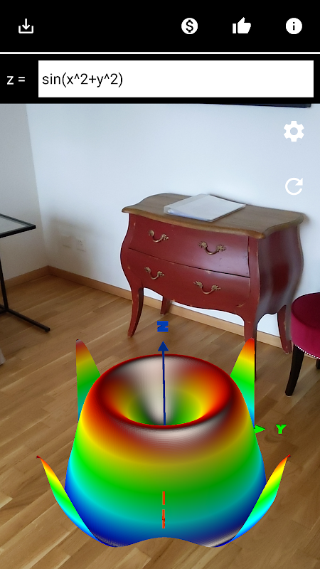 AR 3D Graphing Calculator - Function Plotter is an easy to use and free tool to quickly plot 3D functions of type f(x,y) in augmented reality.