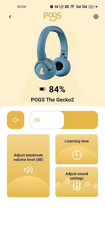 Получите полный контроль над безопасным прослушиванием с помощью приложения POGS и наушников The Turtle & The Gecko 2. Отрегулируйте максимальную громкость в пределах от 70 дБ до 85 дБ и следите за временем прослушивания, поскольку безопасность прослушивания зависит от громкости и продолжительности. Например, прослушивание при громкости 85 дБ безопасно только в течение 3,5 часов в неделю.