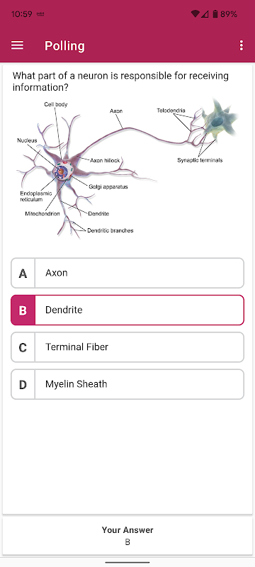 • Вопросы и варианты ответов отображаются на вашем устройстве при открытии опроса, чтобы вы могли отвечать в режиме реального времени или в своем собственном темпе во время самостоятельных оценок.
