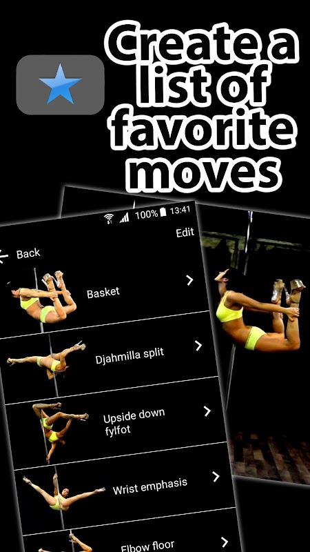 This app will help you to study Pole Dance moves by showing them from different perspective (POV: side and top) with audio and text descriptions.
