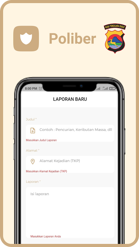 POLIBER merupakan sebuah aplikasi yang mengoperasikan suatu sistem informasi yang dapat mendukung akses kepolisian dan masyarakat dalam memperoleh informasi. POLIBER menyediakan fitur Laporan , infomas (yang berisi informasi terkini yang terjadwal), berita, siaga (yang berisi nomor darurat), lokasi (yang berisikan lokasi tempat-tempat penting ) dan polsek (yang berisi informasi terkini polsek Mataram) serta yang terakhir adalah fitur yang di unggulkan dalam aplikasi POLIBER ini yaitu “Panic Button” yang berfungsi untuk melaporkan keadaan darurat yang lokasinya sudah otomatis terdeteksi pada server POLIBER.