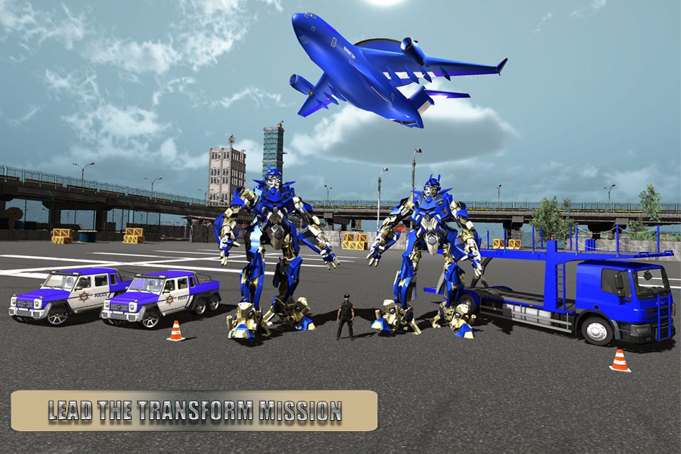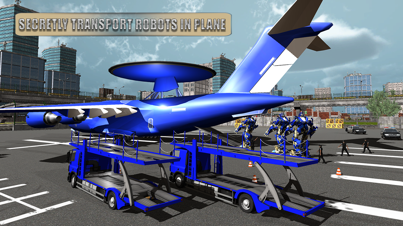 В игре с роботизированным транспортом вы можете трансформировать автомобили-роботы, мото-роботы и водить полицейский грузовик в учебные центры; все эти уникальные возможности делают этот полицейский симулятор транспорта одной из самых роботизированных игр в мире. Сочетая тактику, связанную с играми с полицейскими самолетами, с миссиями по вождению грузовых автоматов на высших полицейских самолетах и играми с полицейскими грузовиками, симулятор роботов позволит вам стать пилотом самолета и наслаждаться полетами полицейских и роботизированными трансформациями роботов в качестве робота-транспортера. Игры для полицейских роботов вместе с полицейскими транспортными играми слишком просты, чтобы подпитывать ваше дополнение к самолетам-роботам, поэтому пришло время сыграть в эту транспортную игру, чтобы насладиться вождением грузовика и миссиями по переводу полицейских роботов. Легкий и плавный контроль за вождением грузовиков. Полеты на самолетах и транспортном самолете намного лучше, чем самые лучшие полицейские игры, и интересная анимация трансформации автомобильных роботов настолько уникальна, что вы забудете все другие игры с трансформируемыми роботами.