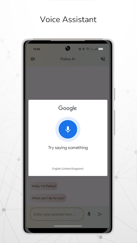 • Интеллектуальные беседы: Pollux — это больше, чем просто чат-приложение; это ваш интеллектуальный собеседник. Участвуйте в обсуждениях, задавайте вопросы, ищите совета или просто общайтесь в приятной обстановке. Pollux понимает контекст, учится на вашем взаимодействии и адаптируется к вашему стилю, обеспечивая удивительно реалистичное общение. • Голосовой помощник: общайтесь с Pollux, используя свой голос на нескольких языках, что делает общение более естественным и интуитивно понятным, чем когда-либо прежде.