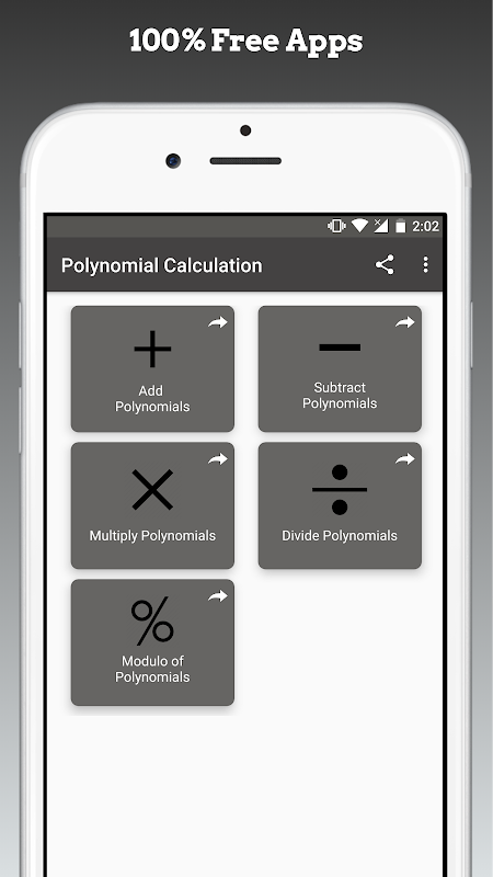 Это приложение представляет собой бесплатный математический калькулятор, который позволяет рассчитывать с полиномами. Вы можете умножать, делить, складывать и вычитать многочлены.