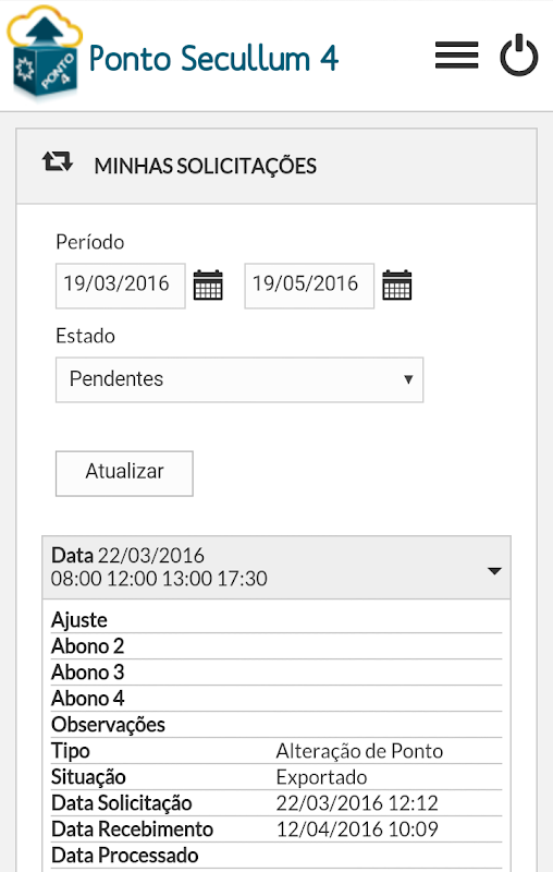 ВНИМАНИЕ: Это приложение работает вместе с Ponto Secullum 4. Перед использованием приложения проверьте, есть ли у компании, в которой вы работаете, услуга с этой функцией.