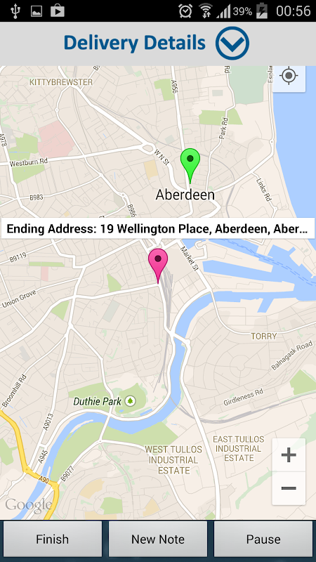 Once the distributor assigned for a round, the distributor can log in and accept the job, and then start / pause / resume their job before ‘ending’ it once all leaflets have been delivered. They can also ask them to make use of the ‘notes’ section. The distributor can pin point their location and then write down a note related to their location. It could be details of a non delivered property.