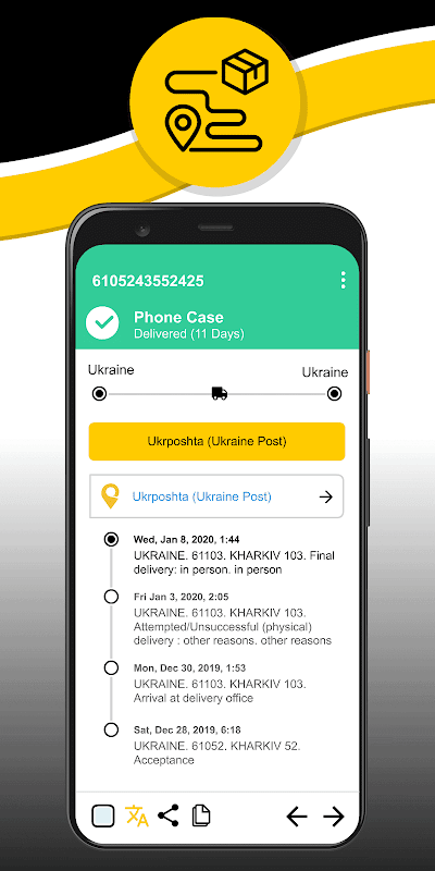 Система отслеживания автоматически идентифицирует почту или службу доставки по номеру отслеживания. Система помогает отследить посылку с самого начала до двери адресата.