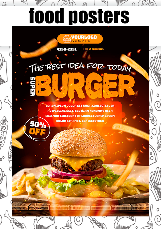 Создавайте плакаты и листовки, используя шаблоны для продуктов питания, бизнеса, продаж и т. д.