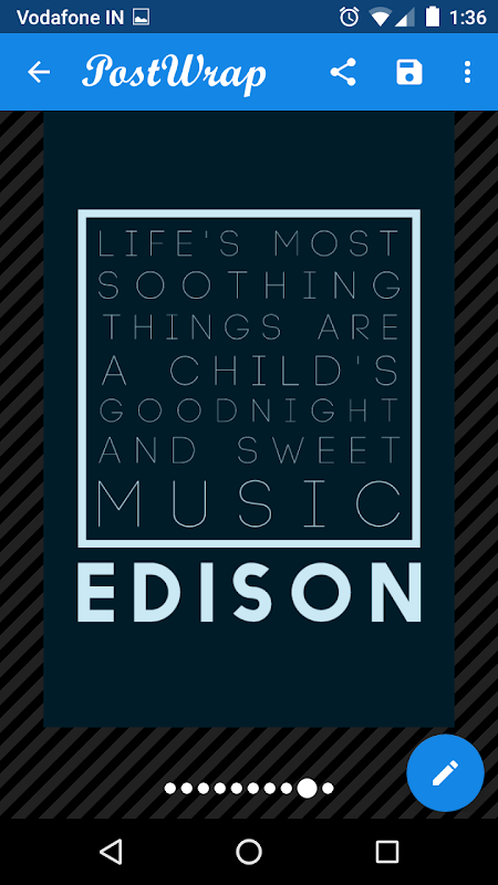 PostWrap мгновенно превращает обычный текст в плакат. Просто введите и красть, и приложение будет генерировать плакаты автоматически. Вы можете выбрать тот, который вам нравится, и сохранить его или поделиться им. Если вы не знакомы с плакатом сгенерирован, вы всегда можете настроить его. Вы можете использовать это, чтобы поместить текст на фото, создать листовки, или использовать его в качестве цитаты создателя.
