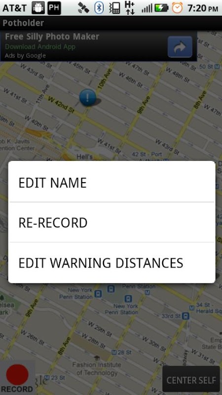 All you have to do is start up the app and click record whenever you hit a pot hole. It can be as simple as that! An icon will display where you recorded and when you come within a quarter or tenth of a mile of the recording again, your recording will play. (Currently the recordings will play when you're moving toward the recording and come within those distances, even if you're on a road parallel to where you recorded) Using the menu, you can record for alternate locations, re-record, give the recordings names, edit the warning distances and more!