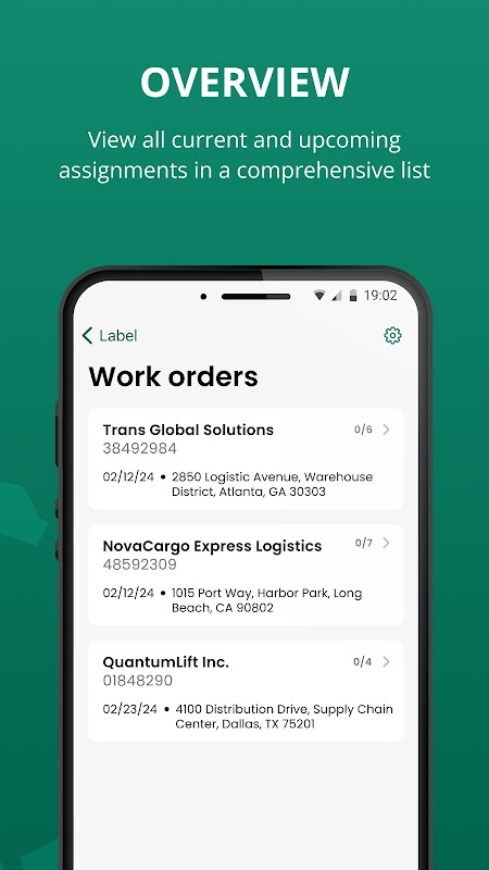 - Назначайте транспортные средства и добавляйте/проверяйте детали.